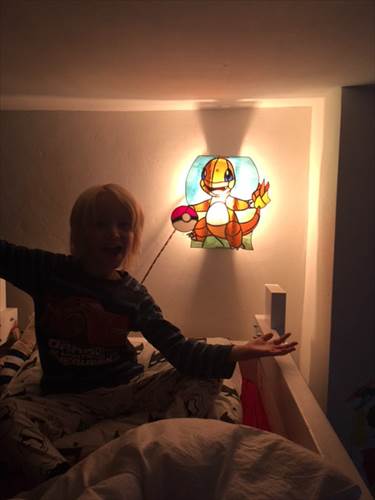De zoon van Bonnie is blij met zijn lamp